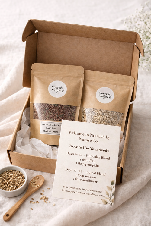 Seed cycling works best when it’s consistent - and consistency is easiest when the process is simple. By preparing seeds fresh and incorporating them into everyday foods like yogurt, smoothies, oatmeal, or salads, this practice becomes a sustainable part of daily life rather than another task to manage.